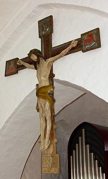 Oprindeligt hang krucifikset i buen mellem skib og kor, men efter reformationen i 1536 ville man have frit udsyn til koret, så krucifikset blev taget ned.